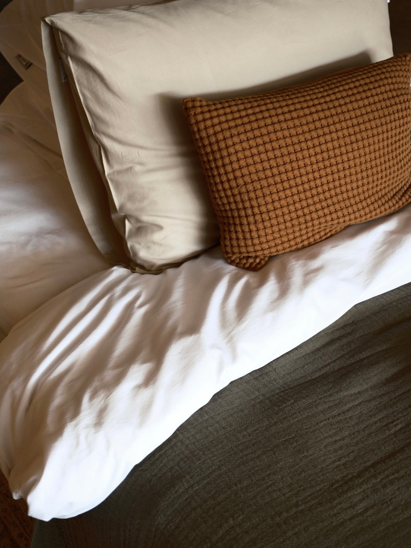 Extra Long-staple natural cotton in our Percale and Sateen Bedding collection, woven into a smooth weave.