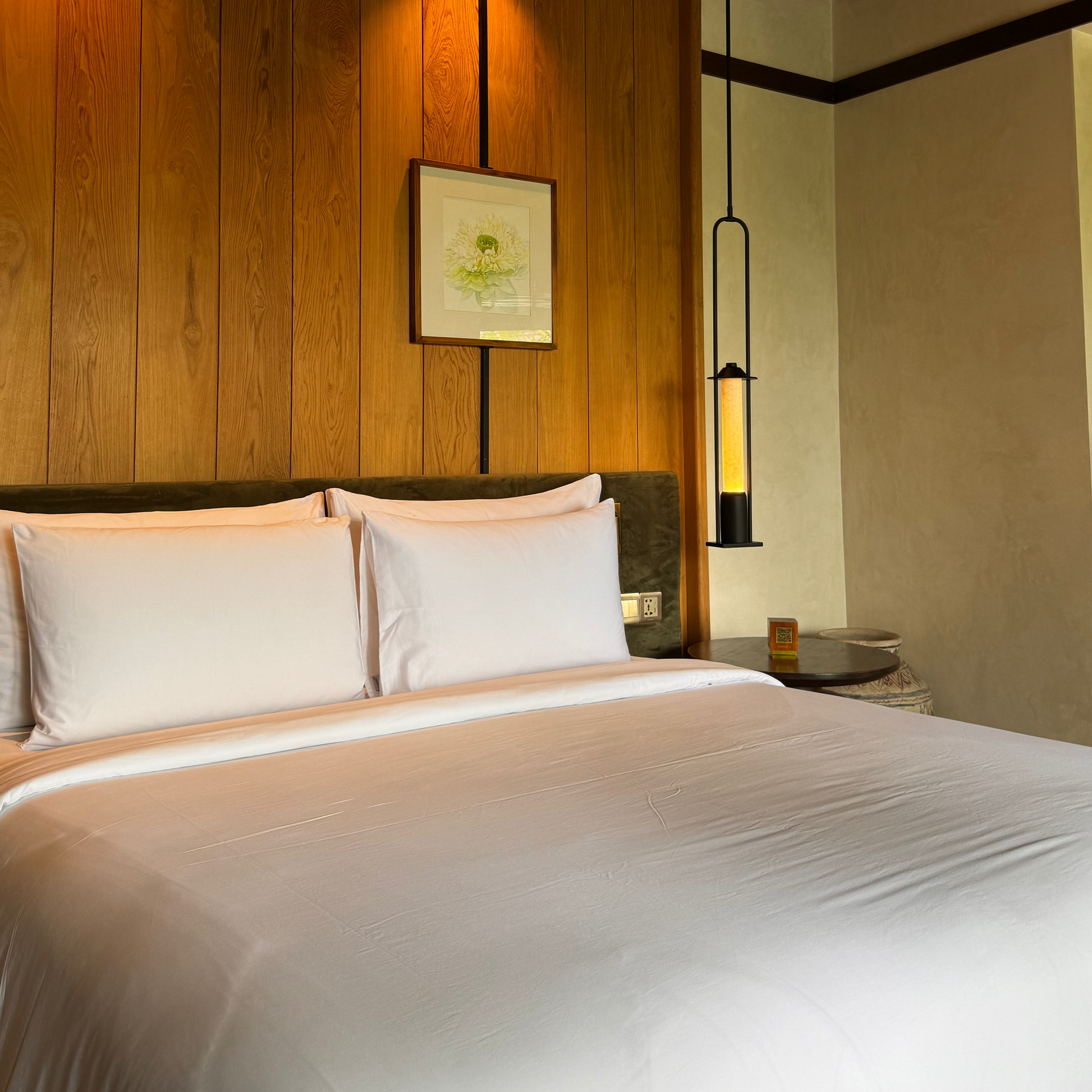 Indulge in the luxury of our Egyptian Cotton Bedding Collection, made from organic Egyptian cotton woven into a crisp percale and soft sateen weave, offering a cool and refreshing feel that enhances your sleep experience.
